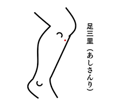 胃腸の働きを活発にし、疲労回復、免疫力向上、足の冷え・むくみ改善に効果があるとされています。健康や長寿に関わる「万能のツボ」とて使われます。